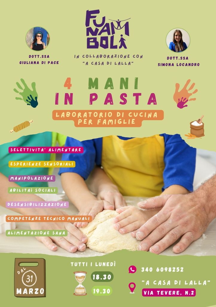 Viene proposta un’ampia varietà di alimenti sani, naturali e gustosi da consocere ed assaporare insieme al proprio genitore, entrambi con le mani in pasta!